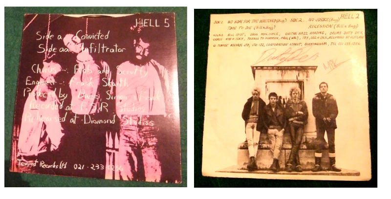 Two of their biggest fans ROB and ICKY even contributed to the chorus vocals on “NO HOPE FOR THE WRETCHED”. The 2 EP’s were released by INFERNO RECORDS which was a record shop in Corporation Street, Birmingham. Inferno also had the Varukers and DFE on the label and all three bands played together at the Digbeth Civic Hall in Birmingham on January 29th 1993.
