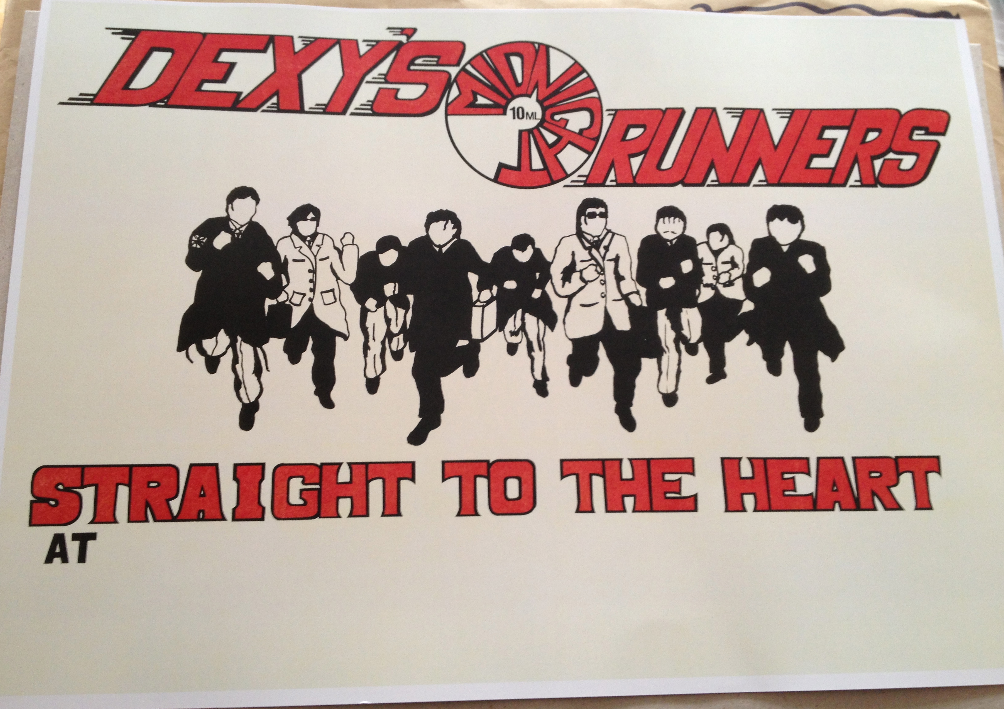 The second item is a truly incredible piece of not only Dexys memorabilia but Birmingham music history. It is one of the very very early flyers for Dexys. Big Jim Patterson designed them, the original was huge, but Ian has rescued one of the very last remaining one from original member Steve Spooner. Ian says that it was in a sorry state but he has cleaned it up and is now producing an extremely limited tun of prints of this brilliantly designed flyer. Big Jim has stated that the 10mls you see in the middle if a reference to the strength of the Dexedrines knocking about in those days.