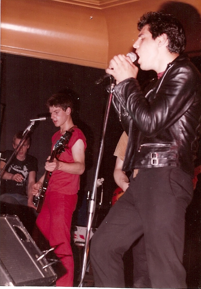 021 mainstay Tony Simpson has sent some great pictures of the famed punk/power pop band. Thanks to Tony for the material. Here is a pic of 021 about to take the stage , posing on the (legendry) stairs of the Golden Eagle, all bands had to lugg gear up theses steep stairs, where the venue room was, not so bad….it was at the end of the night bringing it all down that was the real killer…anyway, great venue.